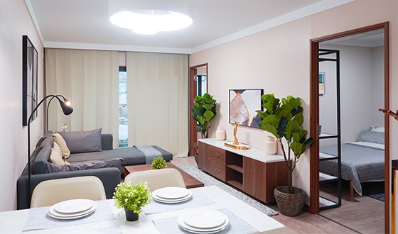 項目概況:人居新都木蘭AAA級裝配式人才公寓項目,此項目為西南地區首個全裝配式住宅建筑,項目由兩個地塊組成,其中3#地塊由3棟混凝土結構和2棟鋼結構組成,4#地塊由4棟鋼結構組成,兩個地塊鋼結構建筑地上總建筑面積3.79萬㎡。整體采用鋼結構建筑主體和裝配式內裝部品,整體裝配率達96%以上,內裝部份均采用我司裝配式裝修全體系。項目設計由西南建筑設計研究院與我司共同配合完成,我司主要負責室內裝配式裝修部份的設計技術及施工工作。后期承接全裝配式人才公寓463套。